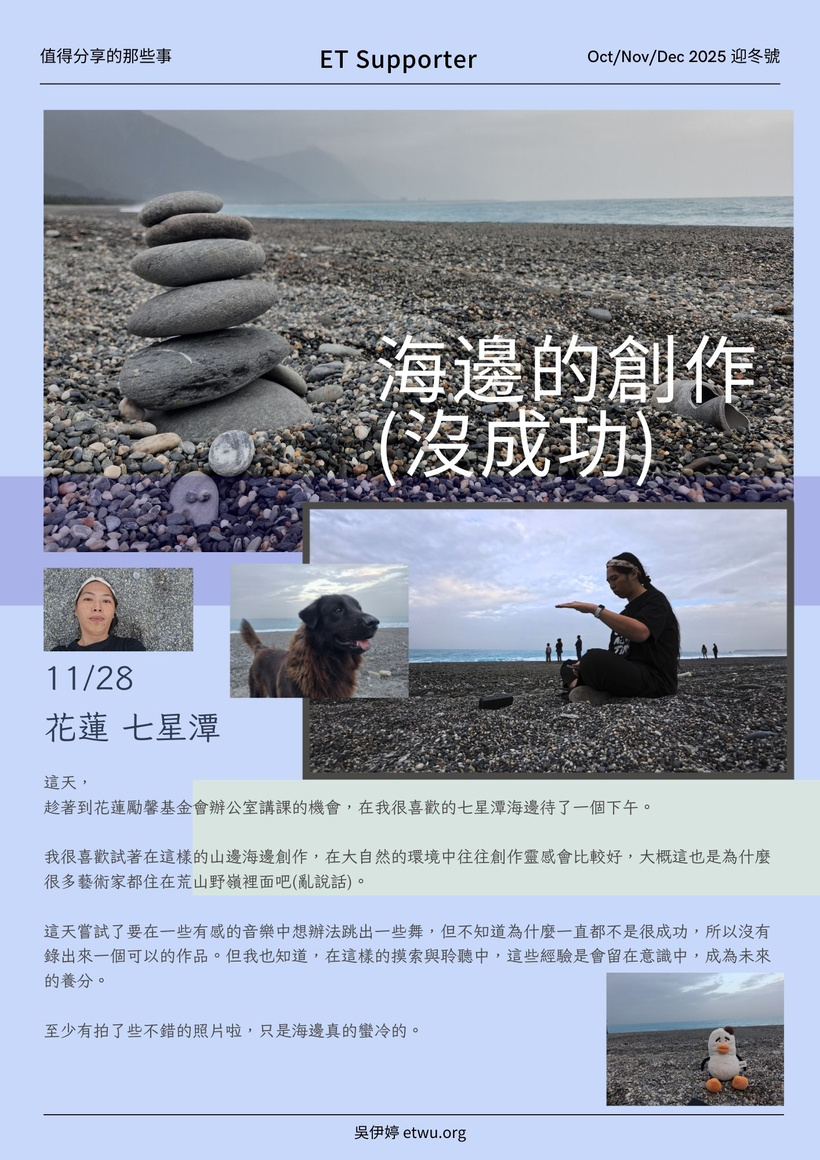 我很喜歡試著在這樣的山邊海邊創作,在大自然的環境中往往創作靈感會比較好,大概這也是為什麼很多藝術家都住在荒山野嶺裡面吧(亂說話)。