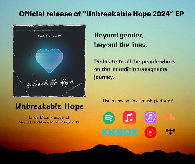 Through personal lyrics and evocative melodies, ET invites listeners to embark on a journey of self-discovery and empowerment. Whether you’re part of the transgender community or simply seeking a soundtrack for your life, “Unbreakable Hope” offers a message of hope and resilience.